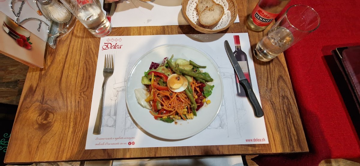 The menu at Ristorante Dell'angelo is a true celebration of Italian and Swiss-inspired flavors. The Scaloppina Di Pollo Impanata Con Patate Fritte E Verdura stands out for its tender, perfectly breaded chicken paired with crispy fries and fresh vegetables, offering a comforting yet refined experience. Pizza enthusiasts won’t be disappointed either, with the signature Pizza Dell Angelo showcasing a crispy crust, fresh toppings, and balanced flavors that make each slice a delight. For meat lovers, the Steak Entrecôte is a must-try, expertly cooked to highlight the rich, savory taste of quality beef. Lighter options like the Gemischter Salat Klein provide a refreshing balance, while dessert lovers are tempted by the decadent Tartufo, a perfect sweet ending to a satisfying meal.